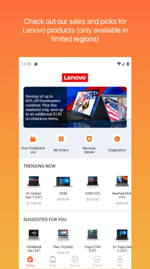 • Now you can explore, search, and purchase Lenovo products in your app!