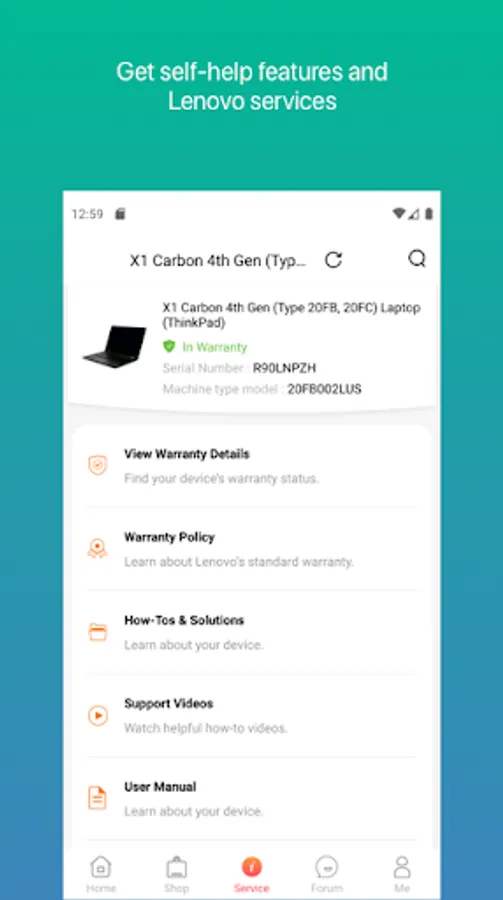 • Find solution articles and videos to help you use your device more effectively and troubleshoot problems. Provide feedback directly to Lenovo about the article’s effectiveness.