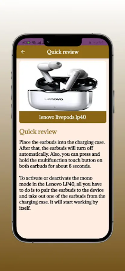 Introduction to the application lenovo livepods lp40 guide You will find in our application :-