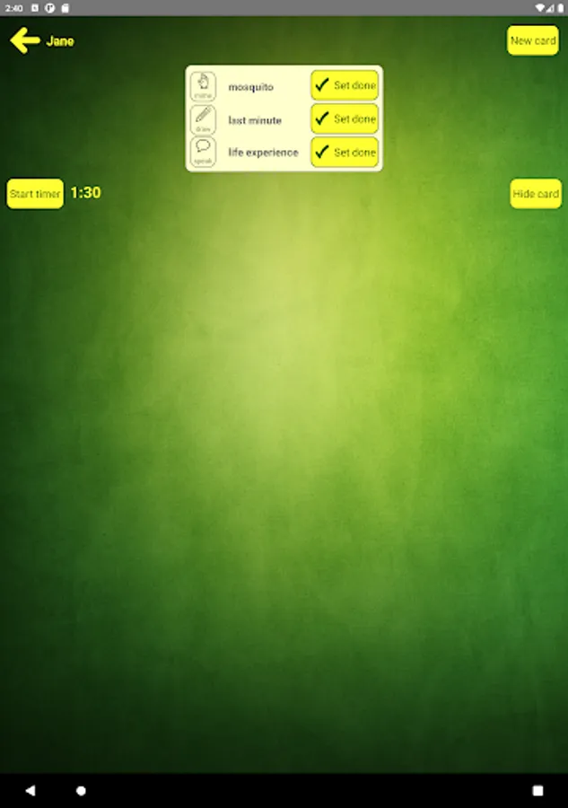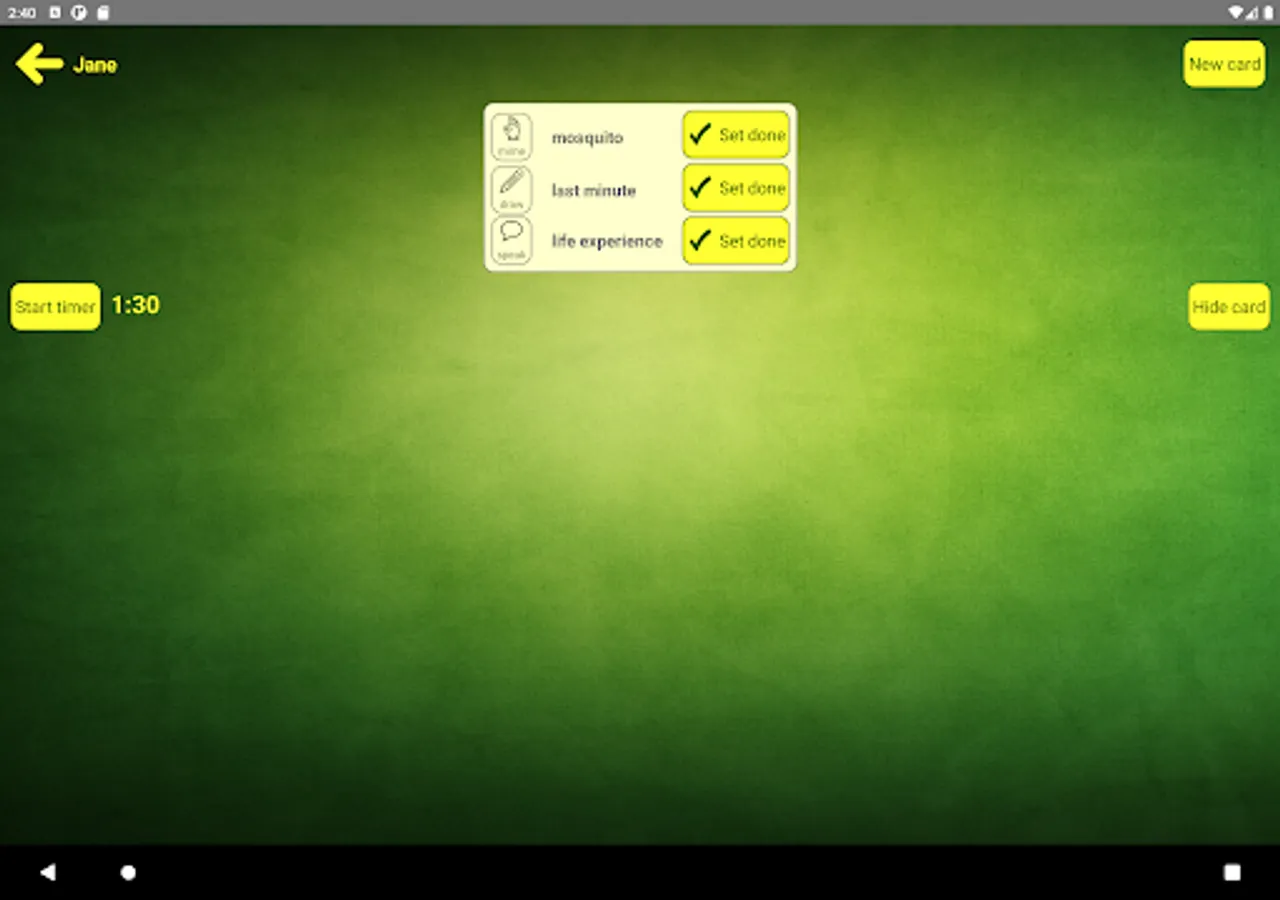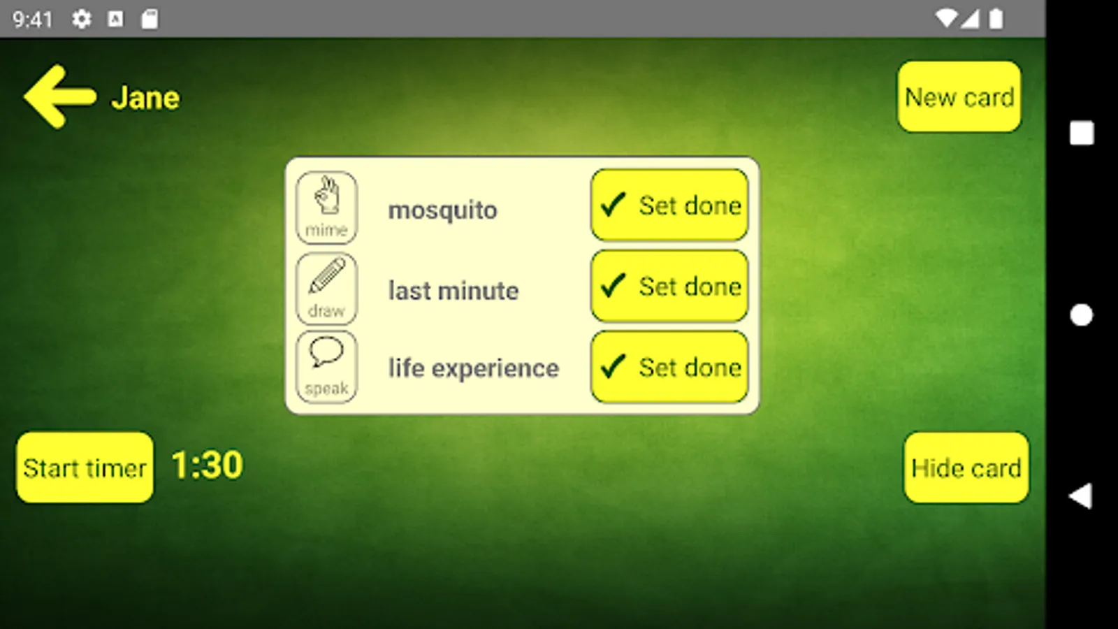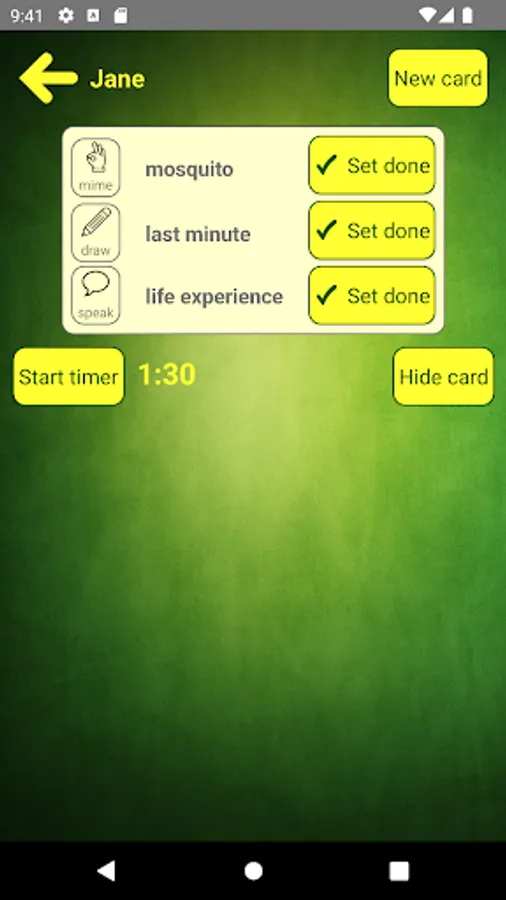 - Start your action. If your team guessed the word, press 'Stop timer', then press 'Set done'.