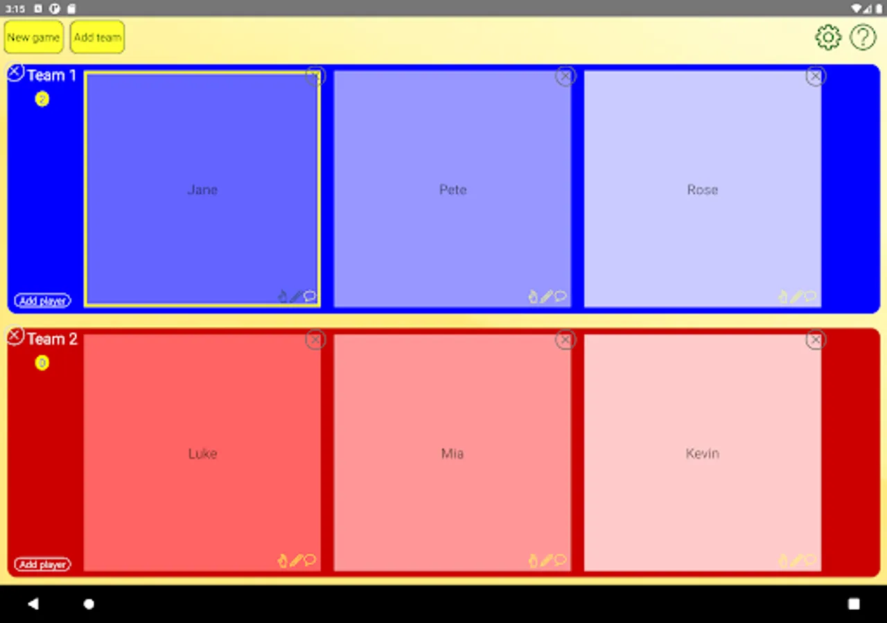Score is calculated automatically. Teams decide how many points are enough to win the game.