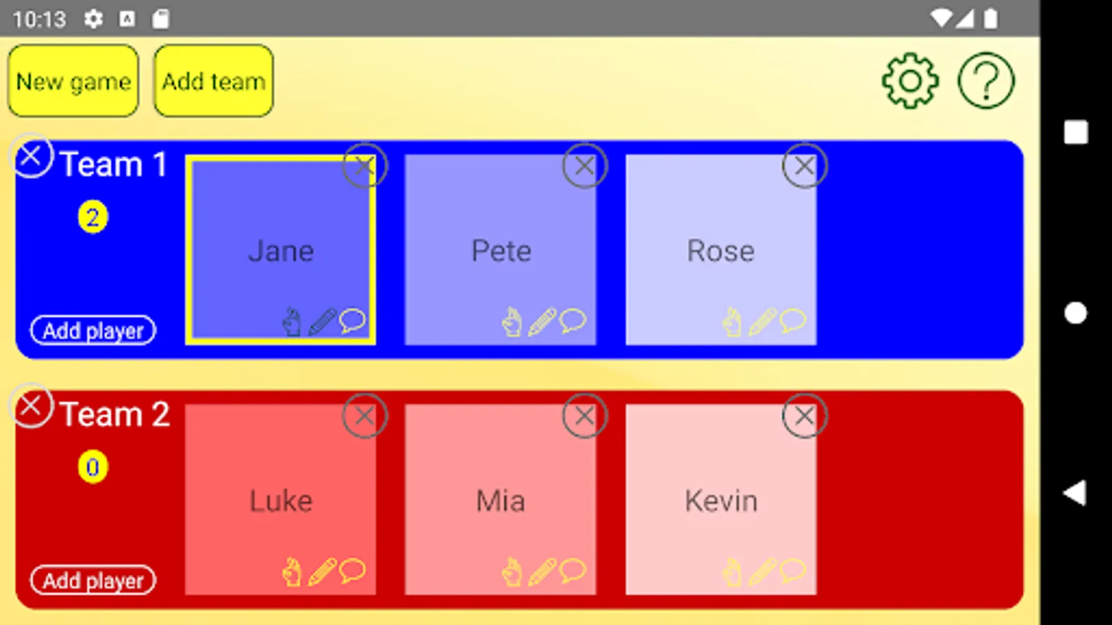 One player has to act (pantomime) or to describe or to paint a phrase given on a card; and the other members of his team have to find out what that should be. If they manage to do so, their team gets score points. If time is up, the player needs to stop his attempt, and turn goes to the other team.