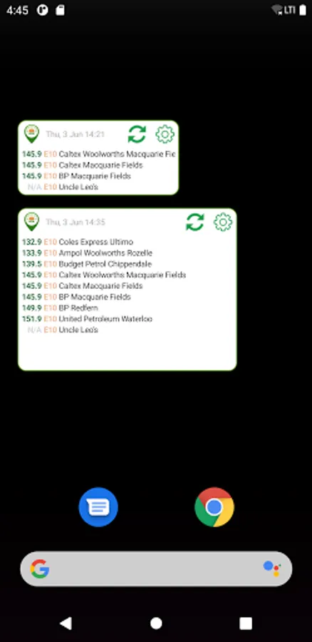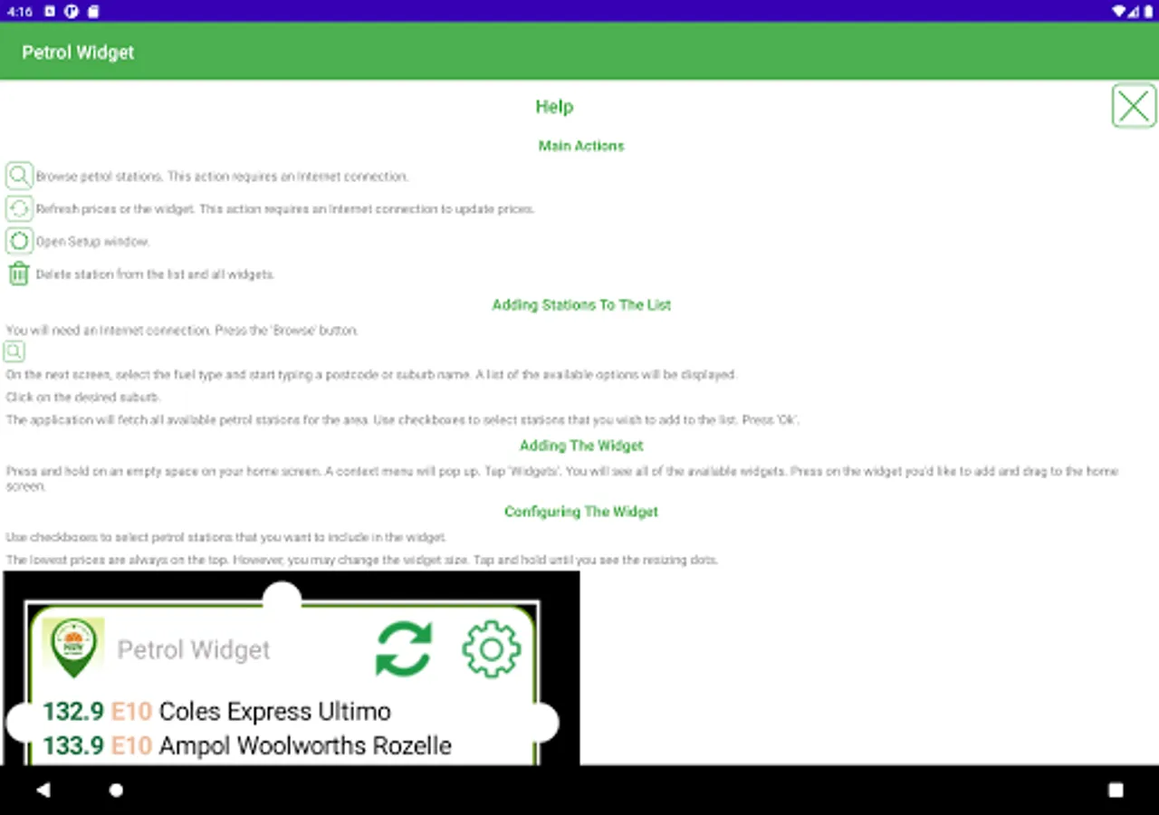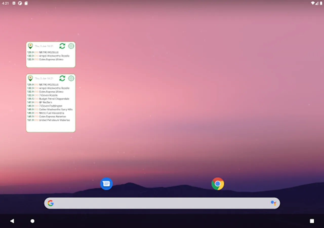 Petrol Widget NSW gives you real time fuel price on your finger tips. Over 2000 service stations in NSW uploading fuel prices in real time. You can spy prices daily to reduce petrol costs. The widget is updating every 6 hours.