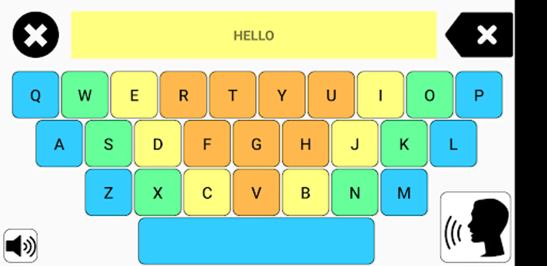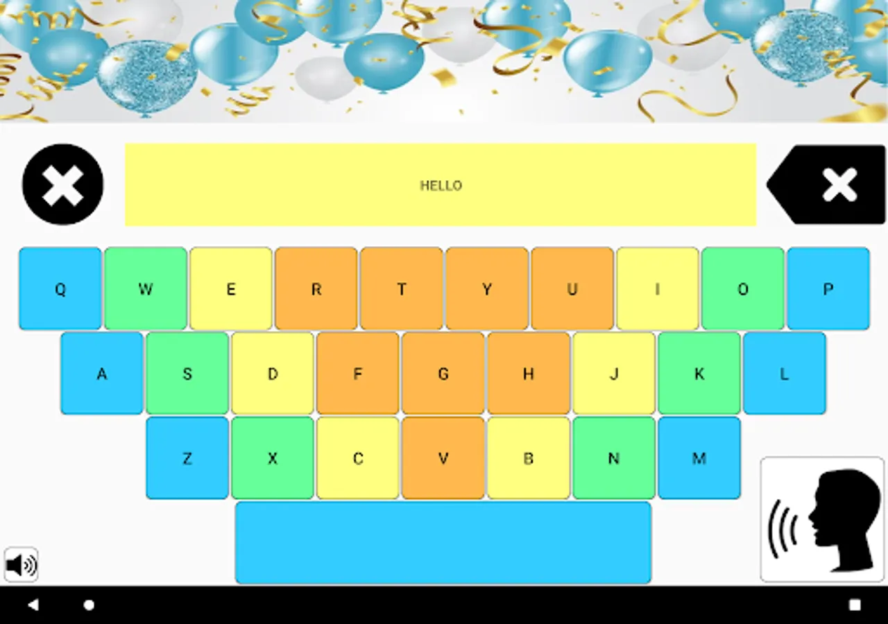 This app is designed for children who are starting to learn typing. Supported languages: English, Belarusian, Bengali, Deutsch, French, Hindi, Italian, Japanese, Korean, Myanmar (Burmese), Portuguese, Russian, Spanish, Turkish, Ukrainian, Urdu (Pakistan), Vietnamese. Press the "Text to speech" button to hear written words. Press a letter button to hear its sound. Buttons and letters are big and easy to read.