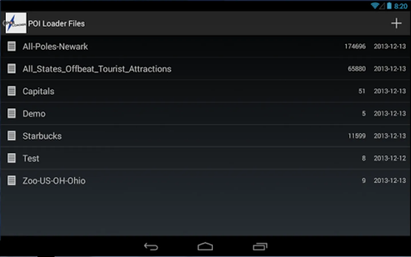 With the new POI Loader (v3.0+) csv POI files are no longer just read into memory and viewed on Google Maps, you can now manage your POI files on your Android device. POI Loader now imports your files into a local database so you can edit the files and points of interest in them as well as add new points of interest and create all new files and then export them back to an csv file you use on your GPS device.