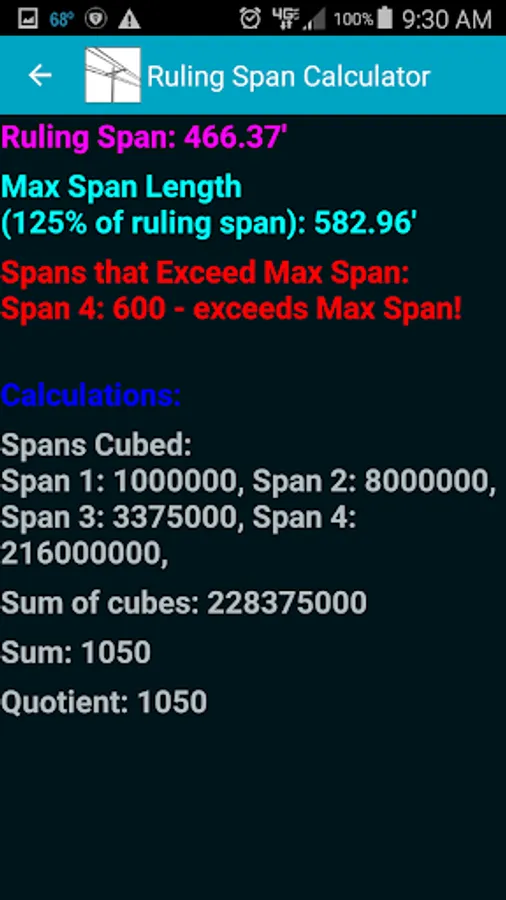 Assists in calculating the ruling span for line design and warns you if a span or spans exceed 125% of the ruling span or the "Max Span".
