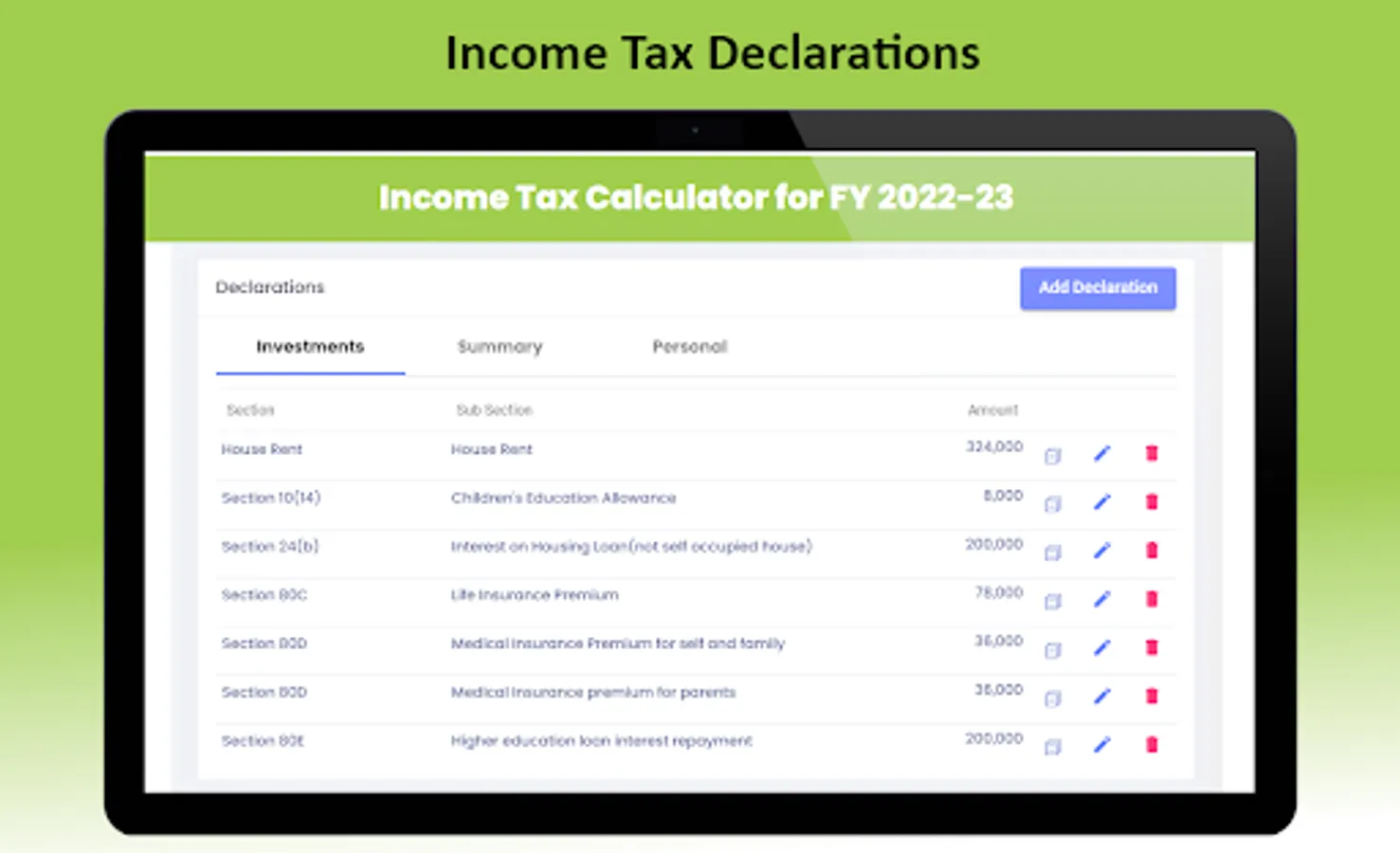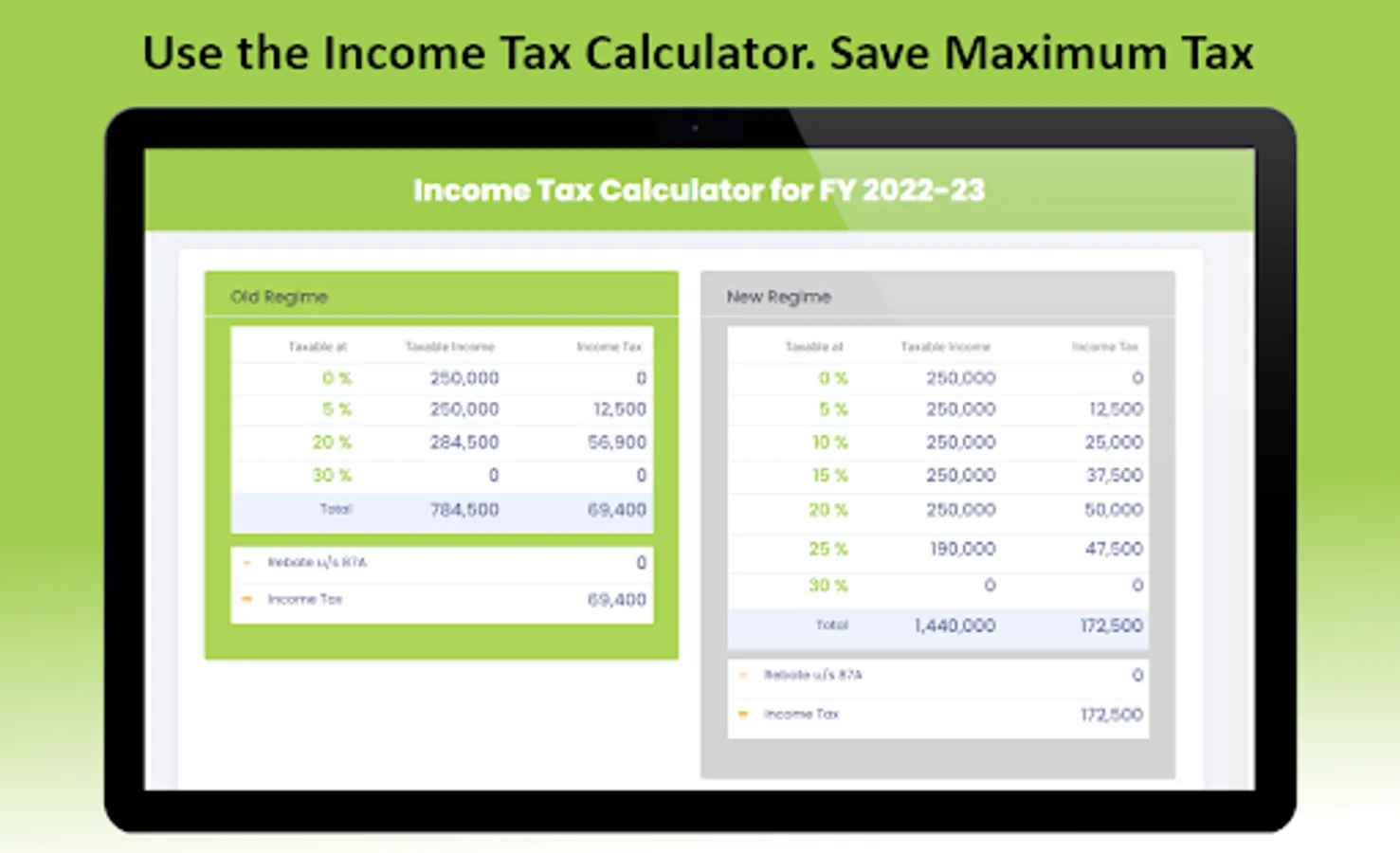Calculating your income tax is easy! Just open the Income Tax Calculator, key in your salary details, declare your investments and the Income Tax Calculator will do the rest for you. The Taxable Income, HRA Exemption, Total Tax Liability, Surcharge and so on will be calculated automatically. The calculator will also recommend the tax regime that is best for you