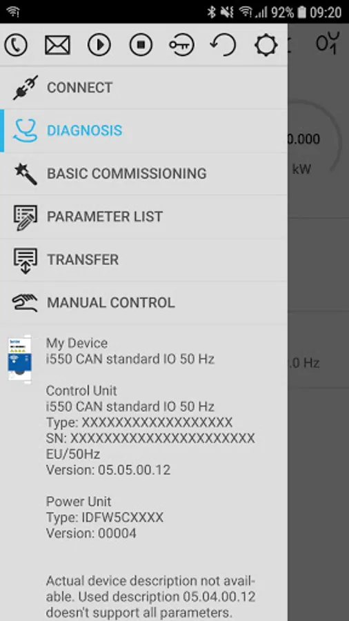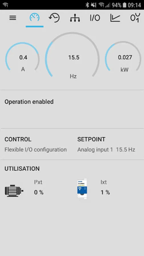 This app allows the diagnostics and parameterization of a Lenze i500 inverter.