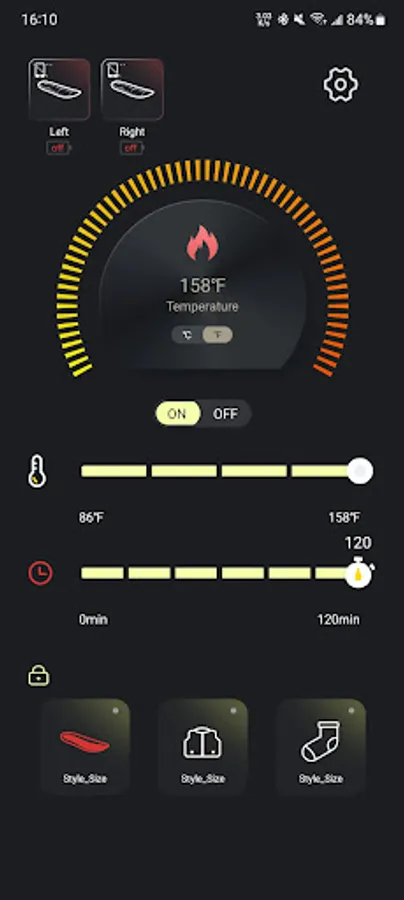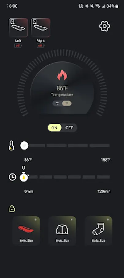 This App includes the following functions: temperature control, timing control, separate control of left and right devices.