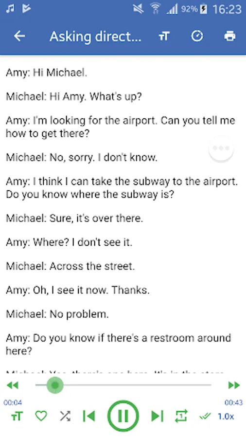 If you are looking for an app to improve your English Conversation skill and help you speak English more fluently, this app is suitable for you. You can listen to English conversations with normal or slow speed.