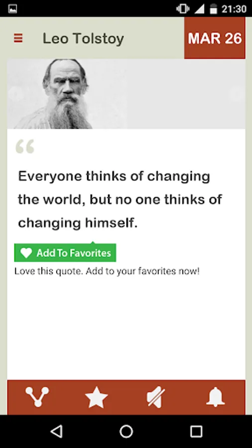 Leo Tolstoy Daily brings the wisdom of Leo to you in a form of Mobile App, wake up every day, with Leo Tolstoy's Motivational wisdom, starting today.