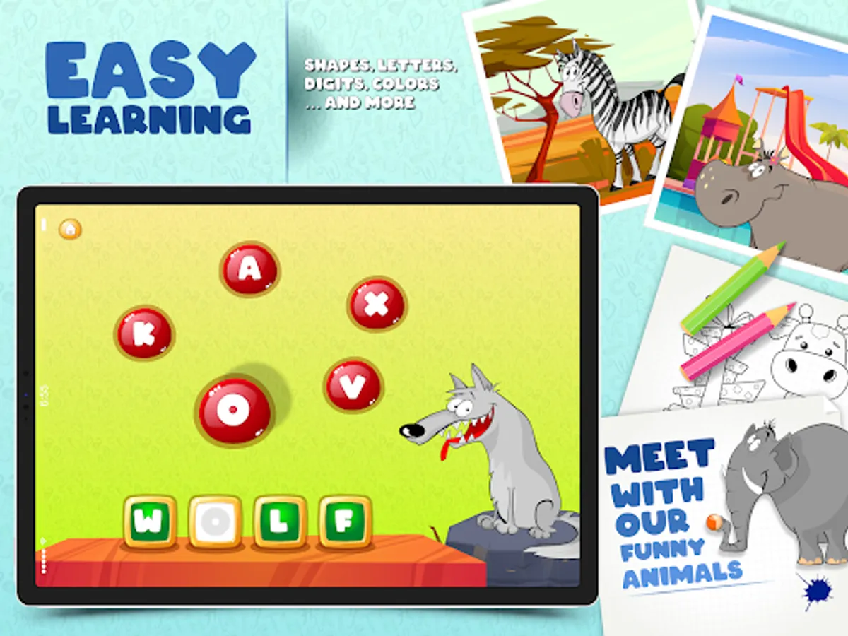 Step into Lalo’s world where he will take your child around the world while they learn how to solve puzzles, identify shapes and colors, read, and spell all in while improving their attention span and motor skills. Your child will help Lalo the Leopard put puzzles and a maze together, find differences in two pictures, color the coloring books and much more. Lalo the Leopard has absolutely no advertisement which means your child can have uninterrupted fun for hours to come. Lalo the Leopard is set up in a way that each child has its own user which means they can play the game at their own pace. We will update monthly with a new variety of games to keep kids entertained and educated for years to come.