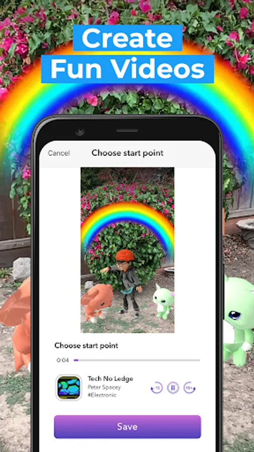 Edit videos with AR to customize the real world any way you want. Make dance videos with animated objects, put a shark in your pool or a dinosaur in your living room - there are no limits to what you can create!