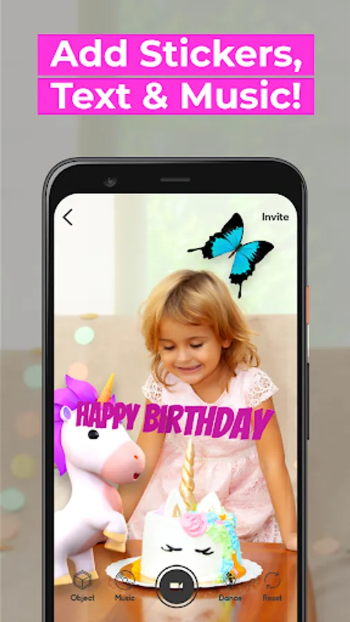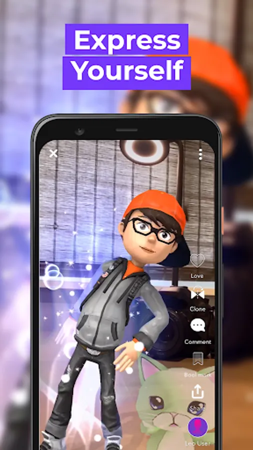 Leo AR has thousands of 3D objects produced by advanced technology, plus special effects like money falling, balloons flying or a rain of roses. Add photo stickers with a tap, send a message with text on your video, or make an AR music video and dance the night away.