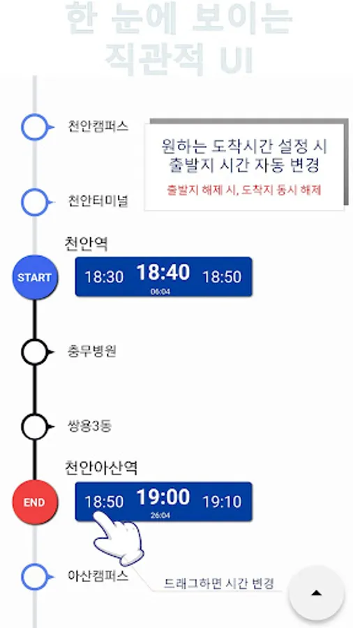 Without reading the whole shuttle bus schedule, you can see all the shuttle piece of time on one screen of the application.