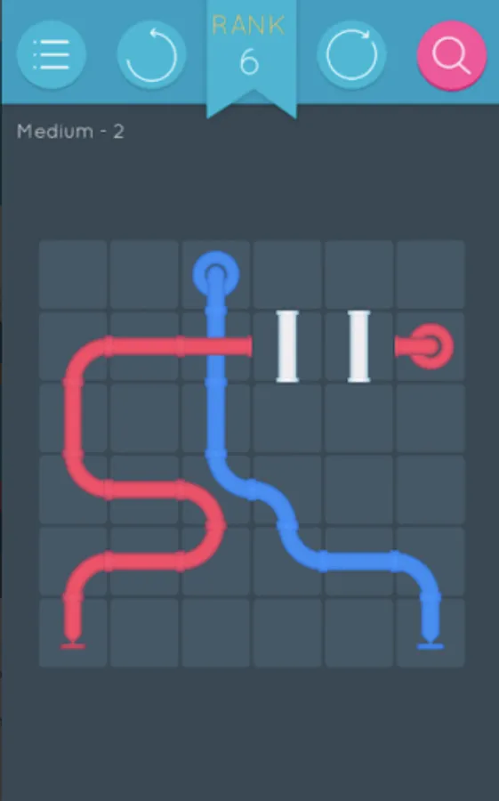 Pipes, also known as Plumber, is a rotation puzzle game. Connect pipes of the same color to let the water flow through the pipeline. Tap a tile to rotate it.