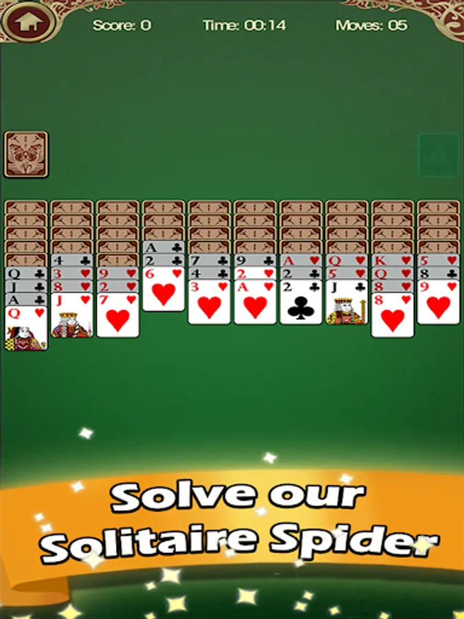 Spider Solitaire is another popular variation of Klondike. It is played with four decks of cards instead of one and the goal is to place all cards in the tableau in descending order. Once an entire cascade of cards is completed it is removed from the game. We included 1, 2 or 4 suits variations for different levels of challenge and new modes Spiderette and Spiderwordt will be included in the future!