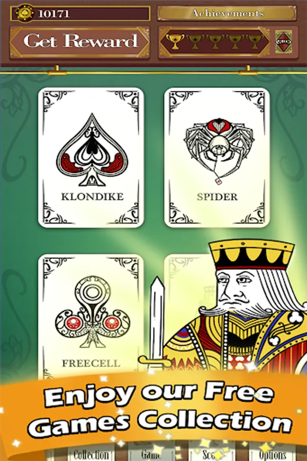 Play Klondike Solitaire, FreeCell Solitaire and Spider Solitaire, all in one collection with 3 of the best classic solitaire card games! New modes will be included soon: Pyramid, Tripeaks and Spades, so be patience.