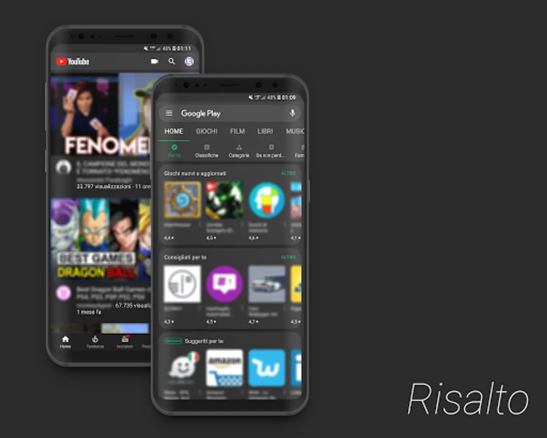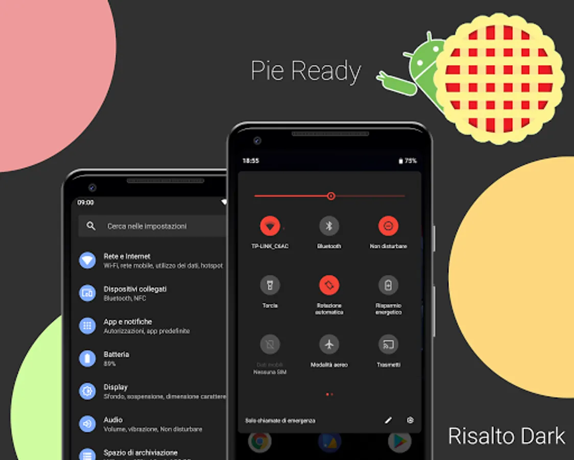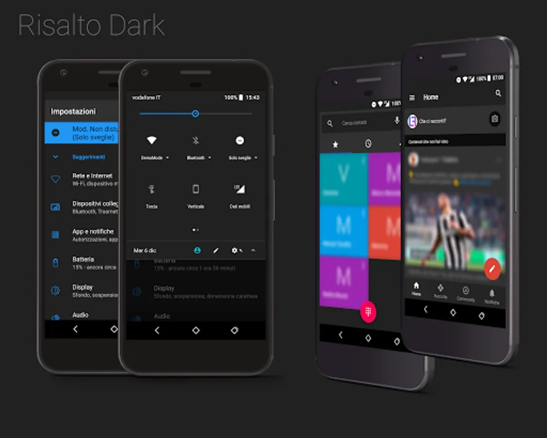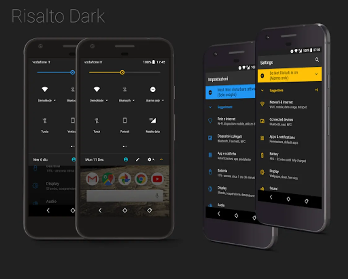 Themed elements are many; the color is dark gray (in all shades) and the accent of the apps is like the stock color is.