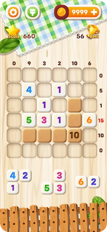 Challenge your math skill with this number block puzzle game. Combine numbers to make 10 vertically or horizontally on a 6x6 board.