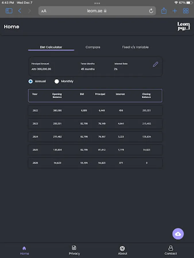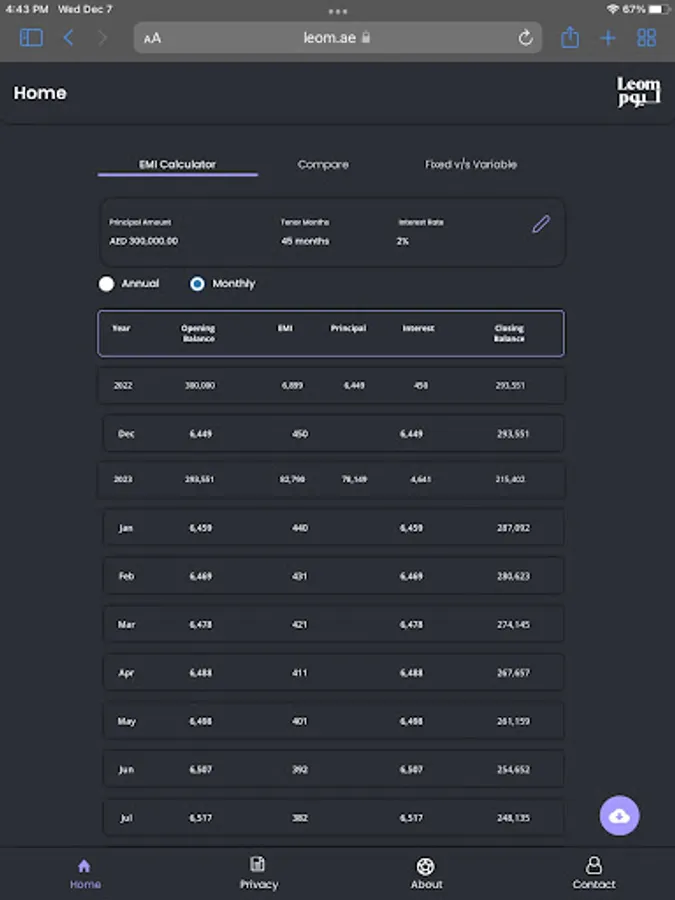 LEOM Calculator App is the perfect application for anyone who needs to calculate an EMI or wants to know their loan options. This easy-to-use app quickly calculates your monthly EMI and views your payment schedules.