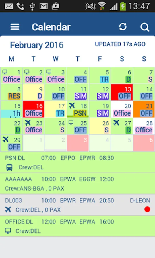 LEON is an application designed for crew members. It offers a mobile access to crew information entered by air operators into Leon system. Leon is a software for aviation supporting aircraft operations fearuring many various functions that allow to run different procedures smoothly. It includes aiding in scheduling, aircraft and crew rostering, airplane dispatch, on-line flight watch, aircraft charter sales and many more. it consists of central database accessible through Internet in relation to users' privileges.