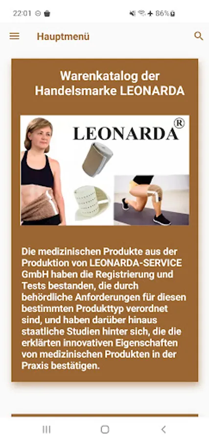 Medical products manufactured by LEONARDA-SERVICE GmbH (Trademark LEONARDA®) have been registered and tested as required by regulatory requirements for a specific product type.