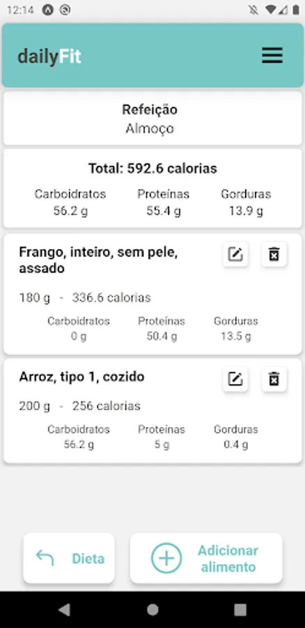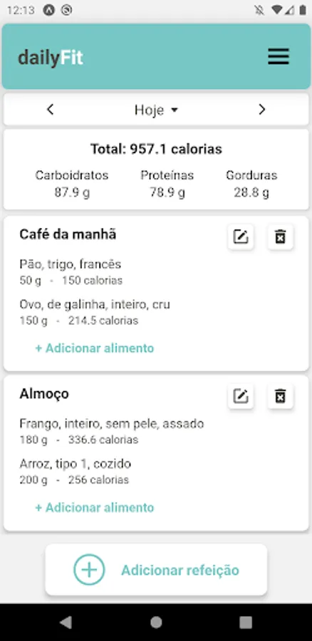 Plan and track your diet with dailyFit, record meals, foods and see calorie and macronutrient consumption based on the Brazilian Table of Food Composition (TACO).