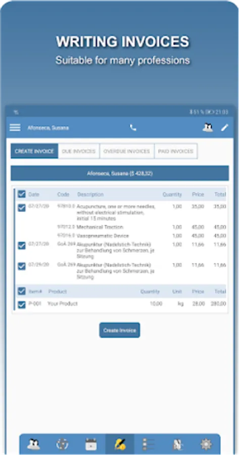 Leonardo is the Android application for private and self-payment practices in a wide range of professions. Leonardo stores your client’s data on your device – not in a cloud.