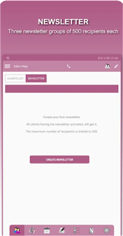 - Manage and send Newsletters (three groups, each with 500 recipients)