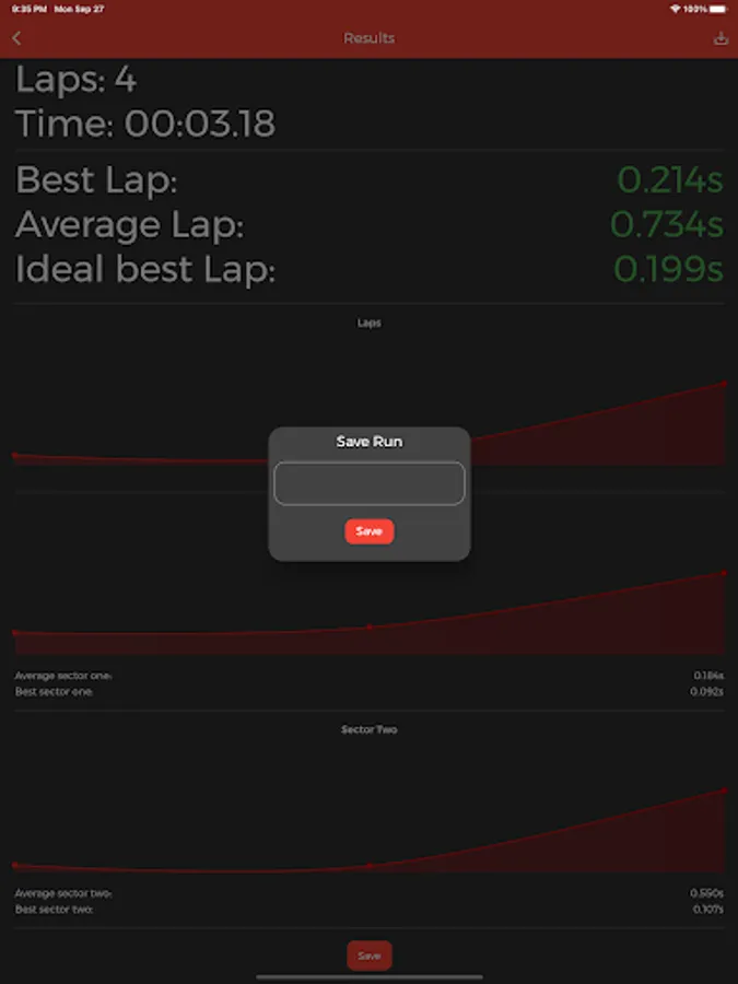 With Racing Stopwatch you can divide your lap in two sector, so you can get more data when you are racing and understand where you can get better!