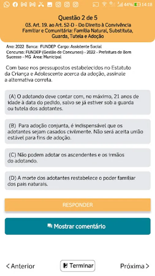 Answer several filtered and personalized simulations according to what you want to study from the Child and Adolescent Statute + SINASE and facilitate your learning.