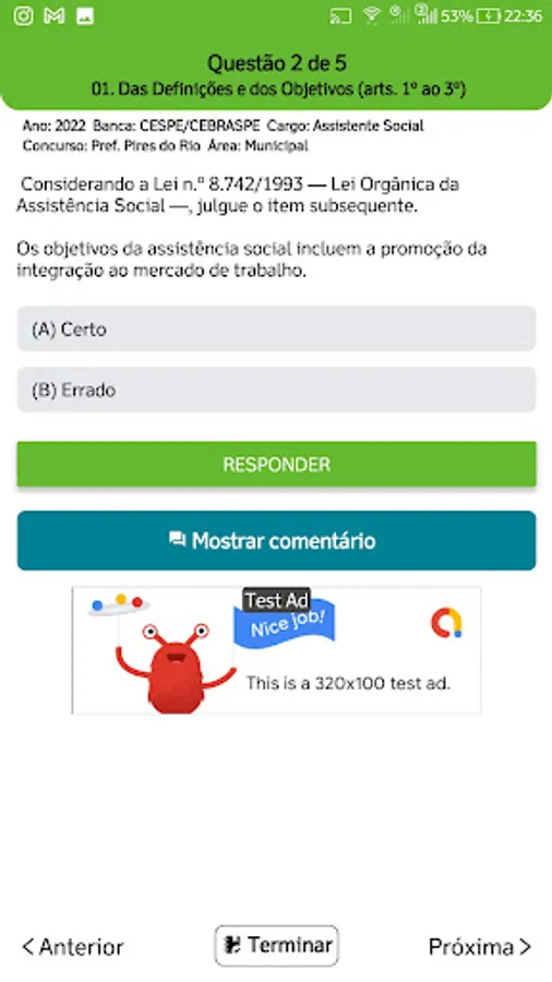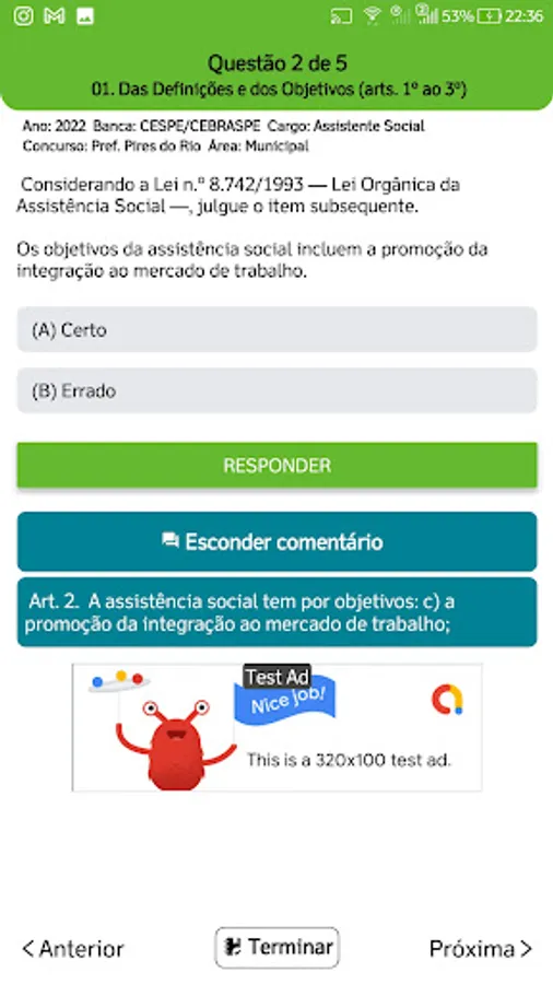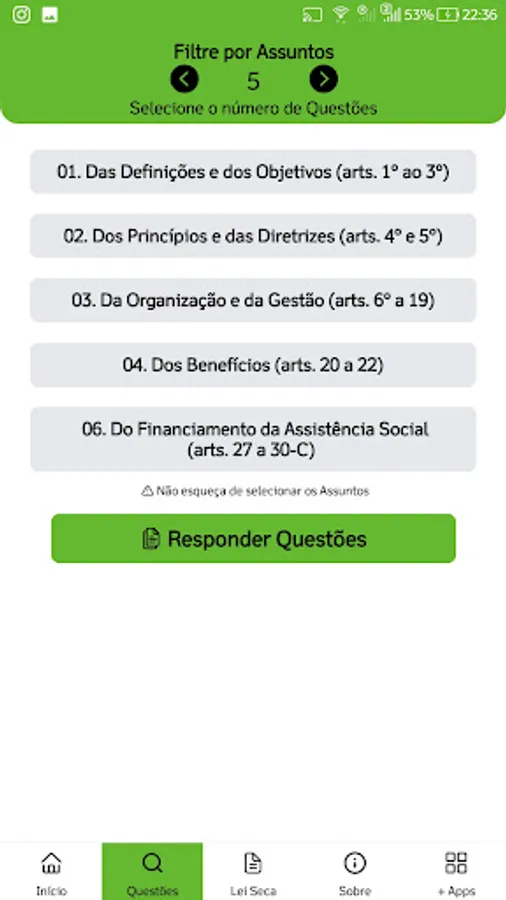 Answer several filtered and personalized simulations according to what you want to study from the Organic Law of Social Assistance (LOAS) and facilitate your learning.