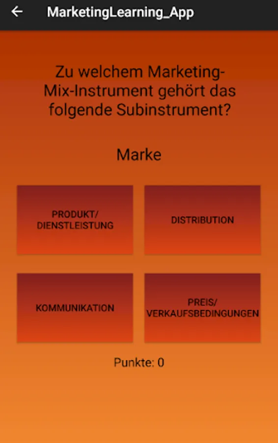 In this application, students of the University of Albstadt-Sigmaringen are to learn the contents of the lecture Introduction Marketing of the degree program Industrial Engineering. The application was developed as part of a bachelor thesis.