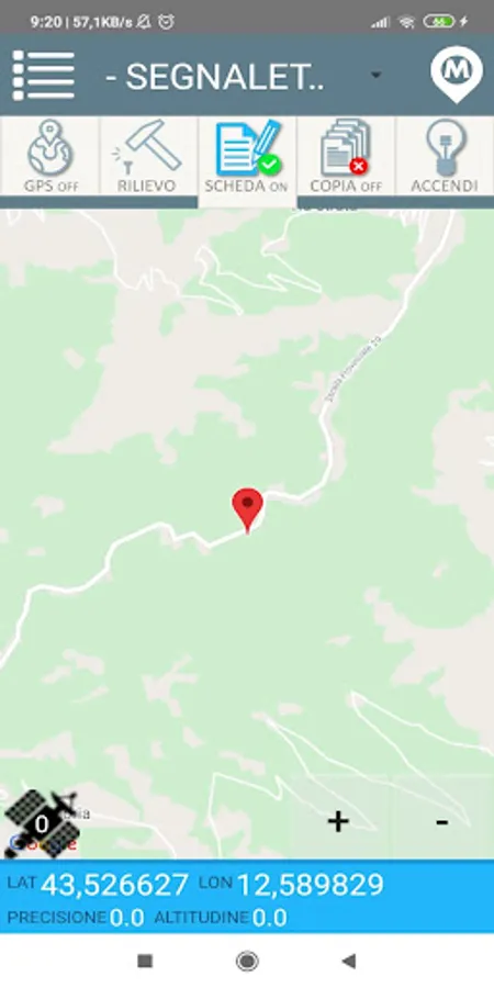 Pressing analyzes the GPS position of the current point and fixes its position on the map.