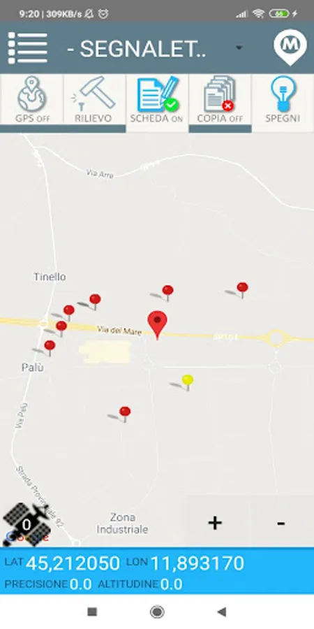 Activate the external GPS receiver (or optionally internal to the device) and the consequent interactive activity on the map area.
