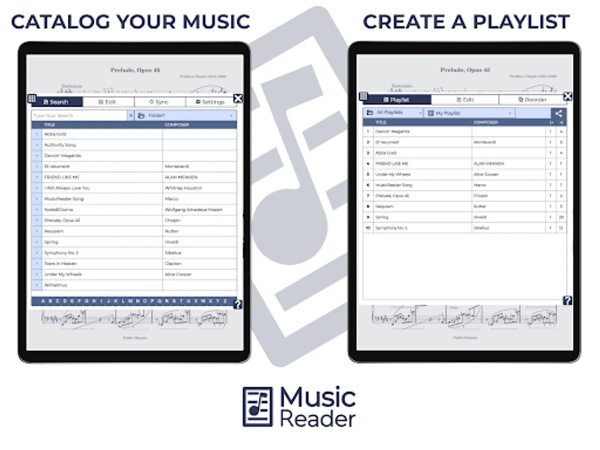 MusicReader is the complete solution for your sheet music needs across all your compatible devices, such as tablets, laptops, phones, and desktop computers. Whether you're on iPad, iPhone (iOS), Windows 10/11, Android, Chromebook or MacOS, MusicReader turns it into a digital music stand!