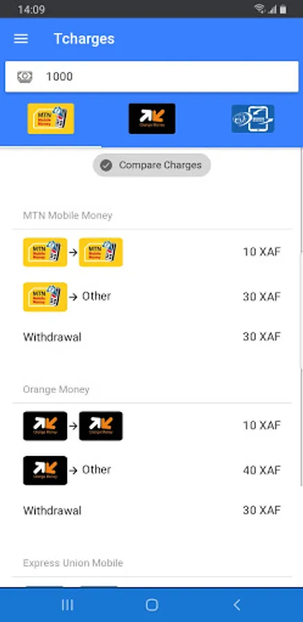 Tcharges is a 100% free mobile money charges calculator. It helps you know your transaction charges for Orange Money, MTN Mobile Money, and Express Union Mobile Money.