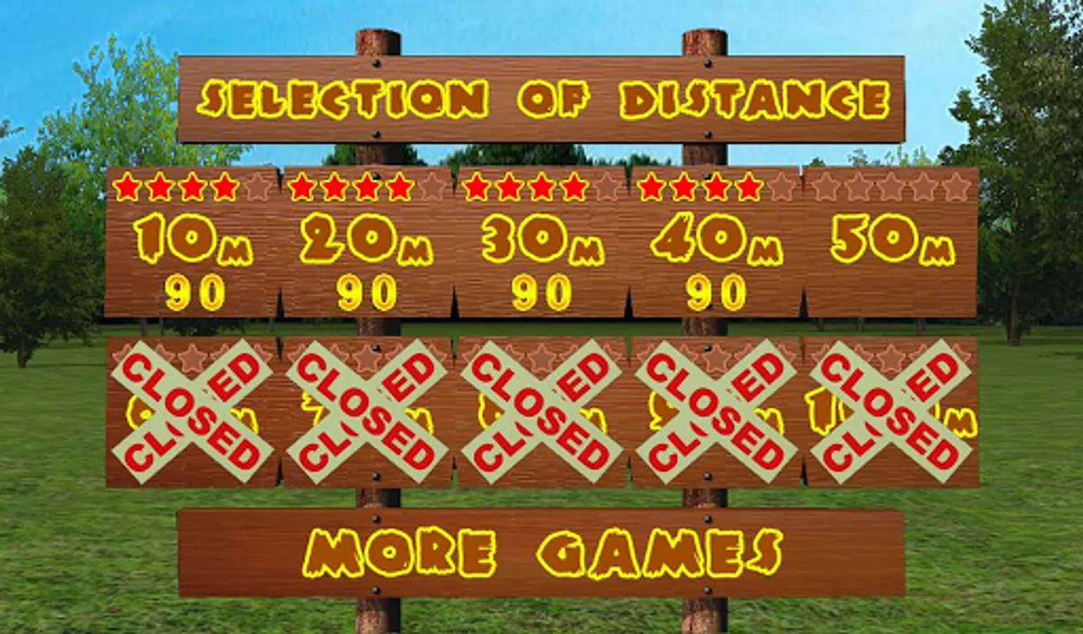 Shooting is conducted at distances from 10 to 100 meters. At each distance is given 10 arrows. The goal - to pass all levels (distance) and score maximum points.