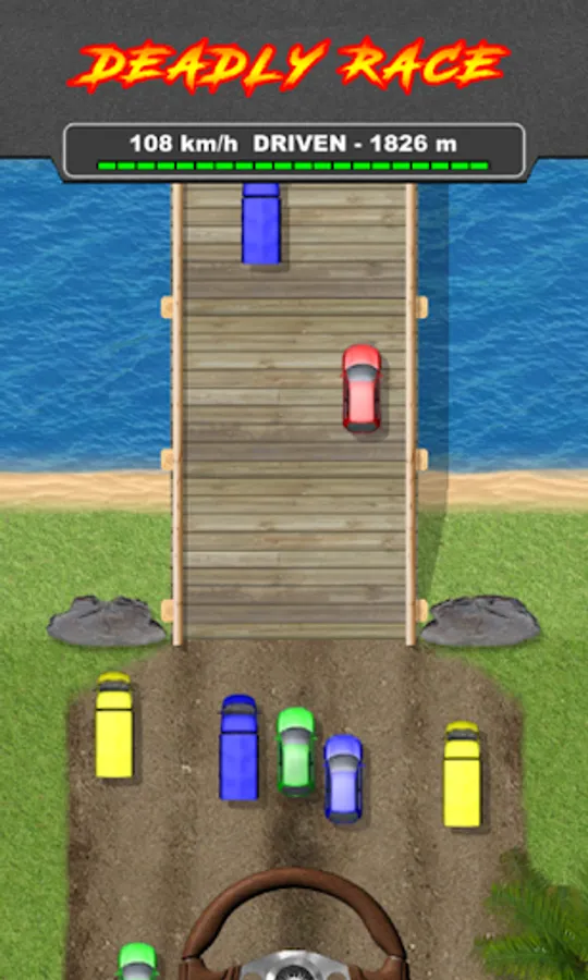 Hold on to the last. Drive as far as possible and show your racing skills in this deadly race. Avoid collisions with other cars and other obstacles encountered on the road and its edges. Each collision reduces the strength of your car to its complete destruction ... The only way to slow down somewhat without damaging the car is to drive along sandy sections of the road.