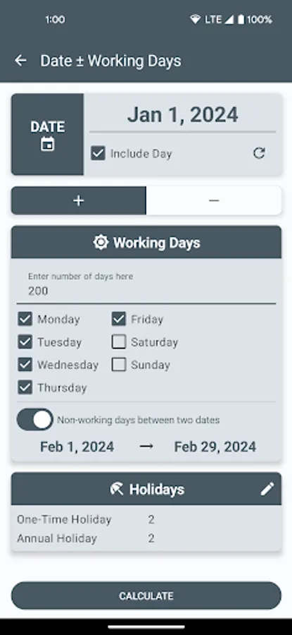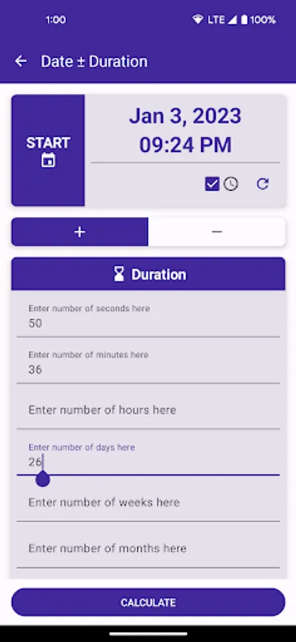 Users can also calculate a date with reference from another date with a duration. Just key in a date and a duration, then select "plus" or "minus" to get the result.