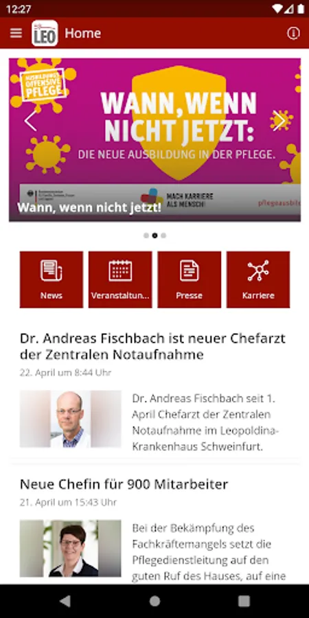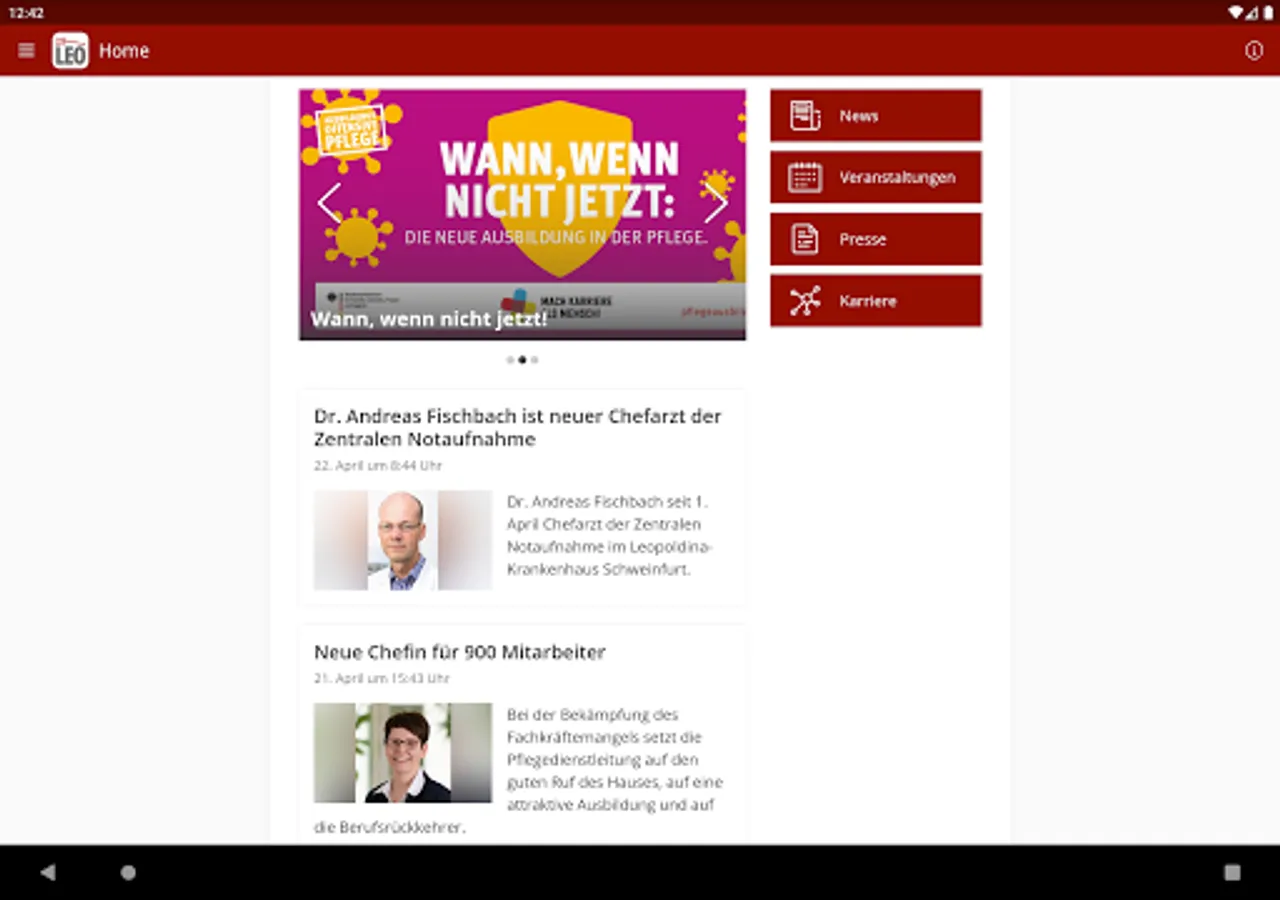 With the MyLeo app you will receive general news and information from the Leopldina Hospital of the City of Schweinfurt GmbH.