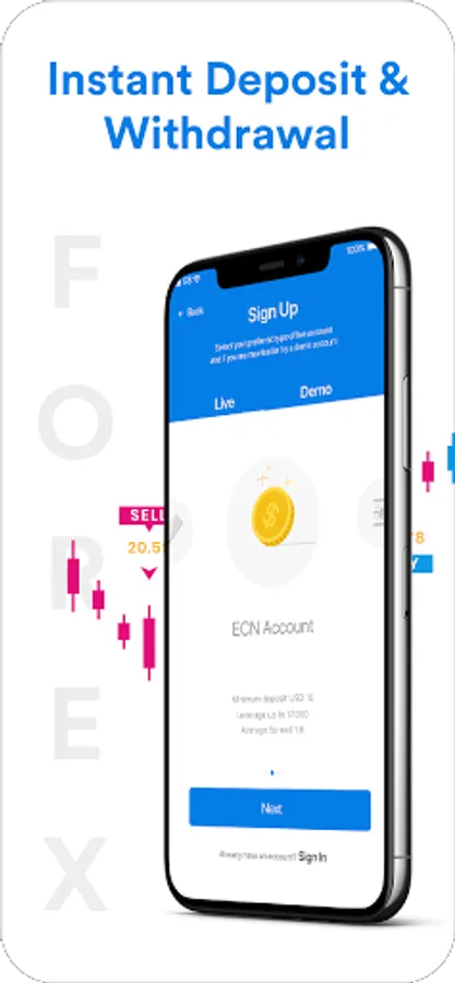 Open trading accounts: Open your Forex Trading Accounts with simple steps of the registration process which takes less than a minute.