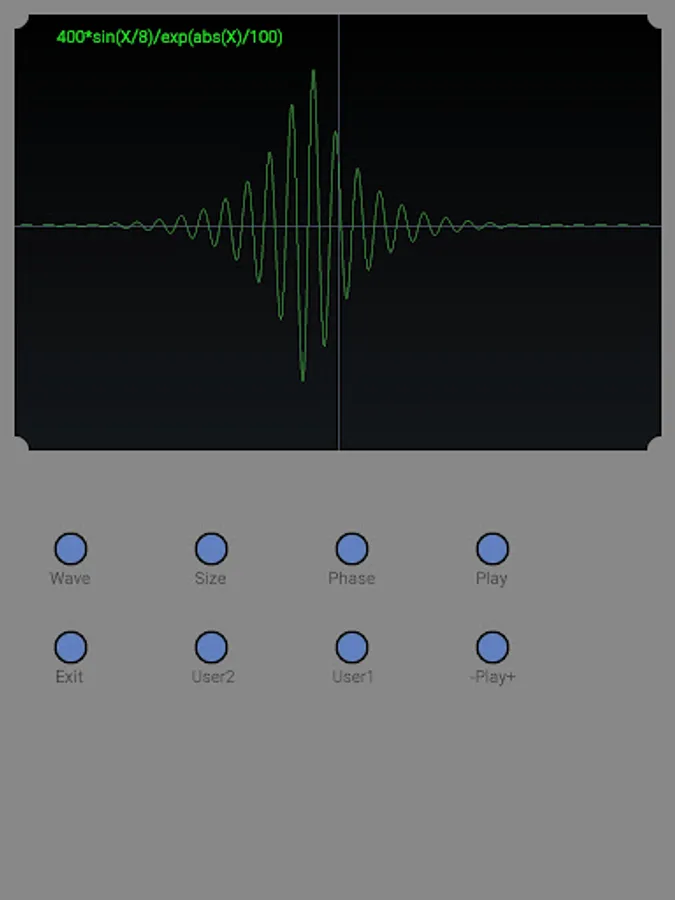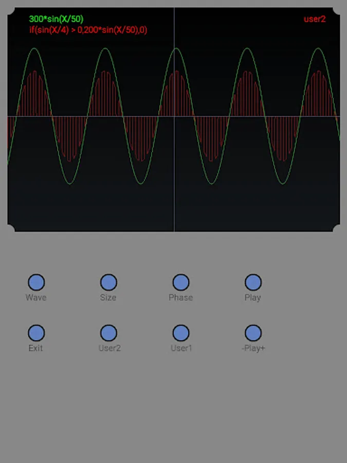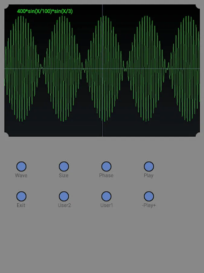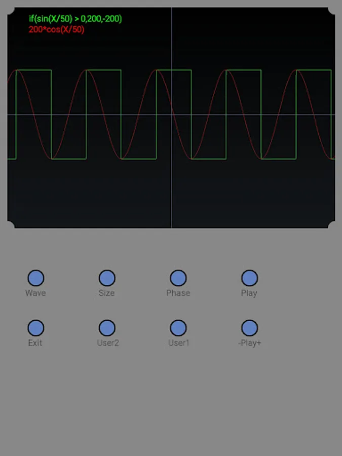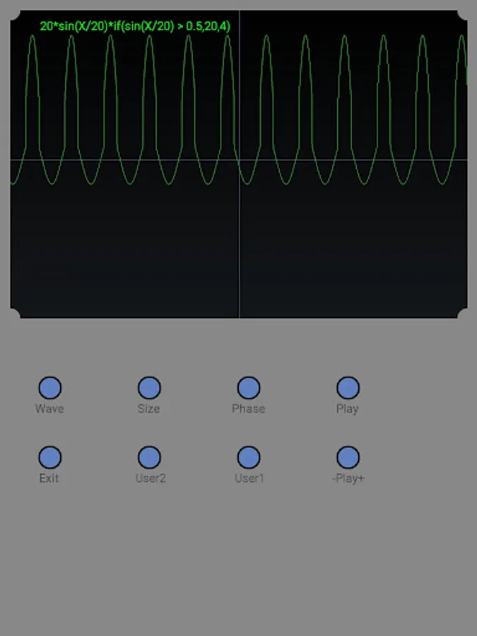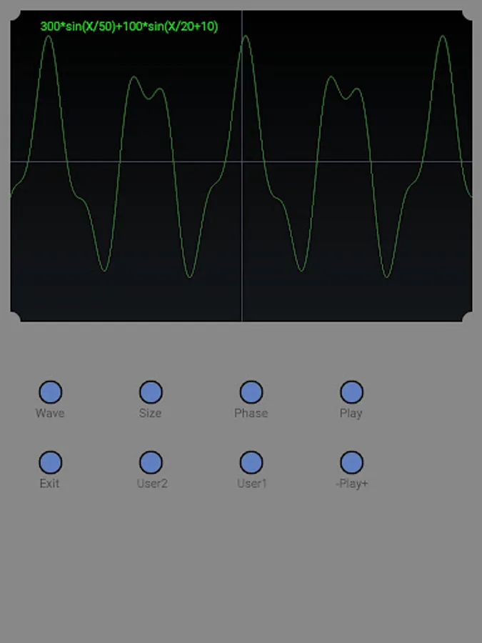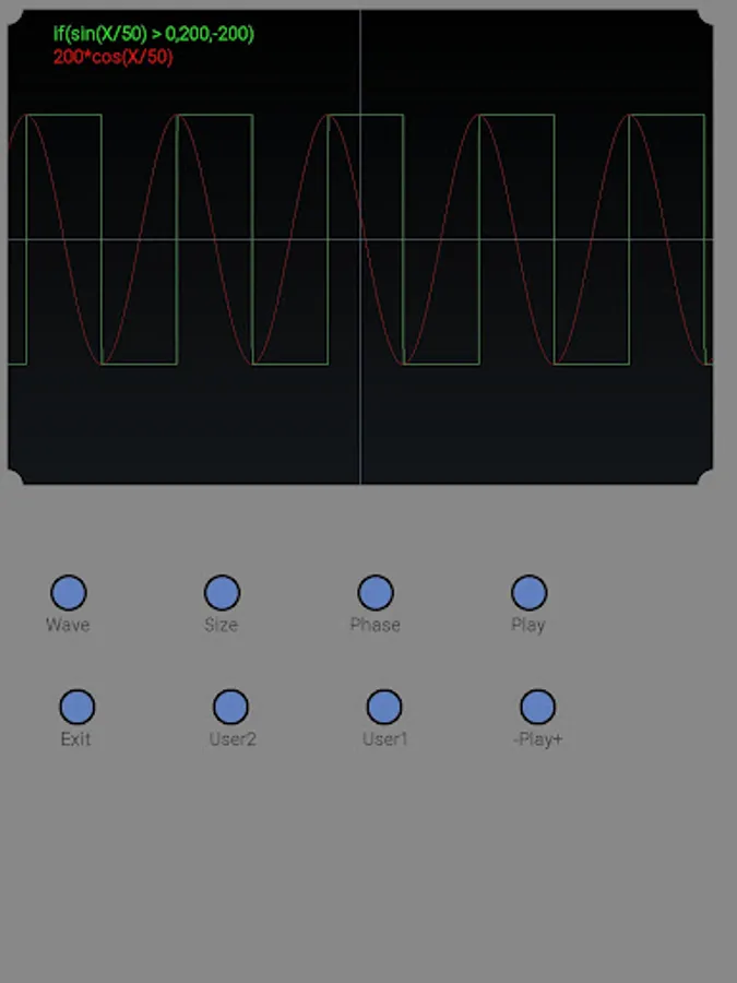 Oscilloscope simulation application. Several predefined waveforms and two user-definable waveforms.