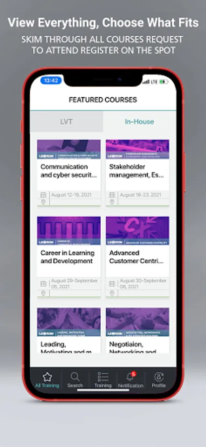 LEORON Internal Development Academy Mobile Application is designed to help you plan your annual training calendar and track your career development in a very easy manner. Now you can access all training related information and content in one place. You can easily skim through course content, check available LVT and e-learning courses, view the list of all available training programs and ask to attend or enroll directly from your mobile device.