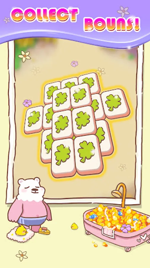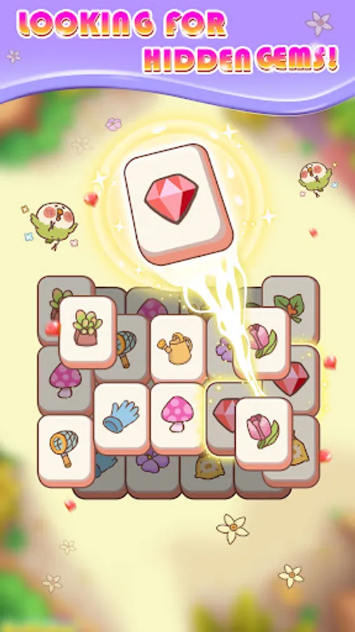 Features of this fantasy puzzle game: Find three mahjongs with the same pattern, put them in the favorites column, and automatically eliminate them. You can also collect hidden gems and clean up annoying weeds or confetti to achieve your goals. The remaining Mah will automatically fall into the collection bar like a waterfall and be eliminated. Each puzzle has challenges that you must overcome: reaching more combos can speed up the removal of confetti and garbage, and you can get more gold rewards when clearing levels, thereby increasing the difficulty of puzzle three.
