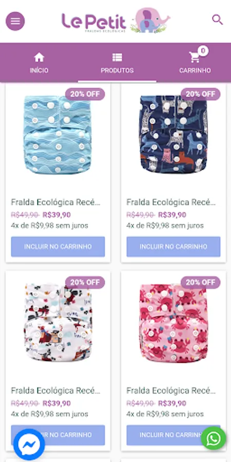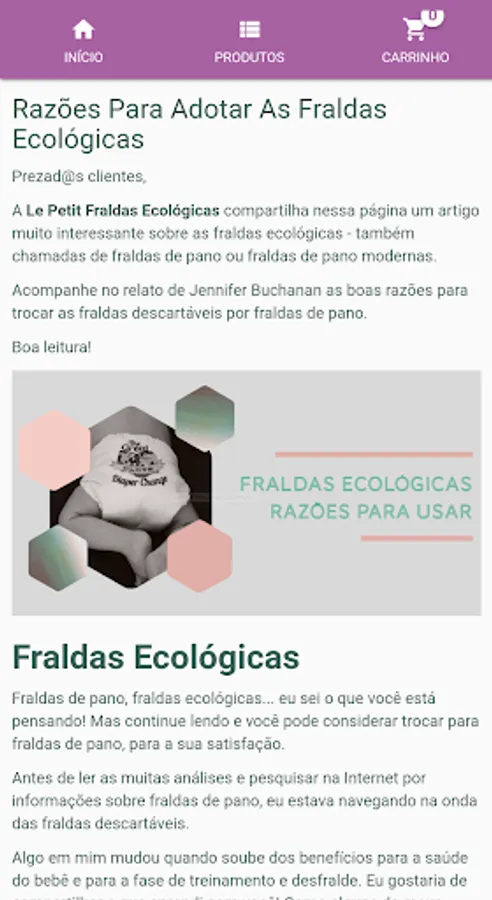 Through the app you can access our content about ecological diapers, request service and make purchases.