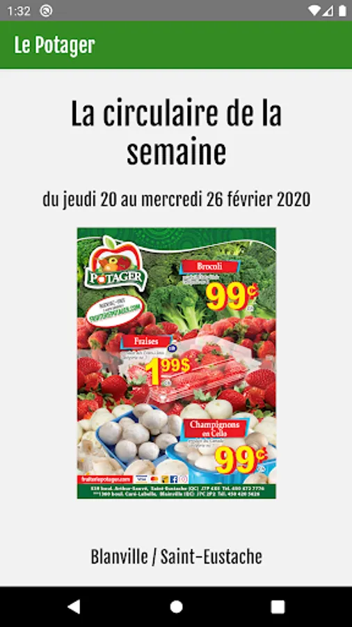 The free Vegetable application allows you to consult the latest circular from Le Potager in Blainville and Saint-Eustache. Our Fruiterie offers a wide variety of cold meats, cheese, fruit and many more. See our attractive promotions and unbeatable prices!