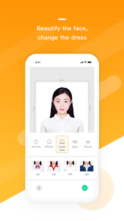 Beautiful photos: beautify the face. Several sets of suits templates to choose from, intelligent online replacement. Create the most beautiful ID photos.