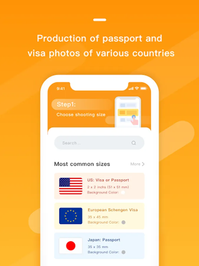 Diversified sizes: Contains the photo size requirements for passports and visas of different countries to meet various search scenarios for users.